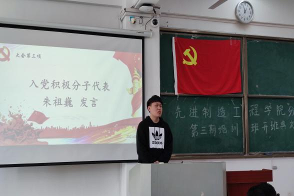 會議第四項,由入黨積極分子代表朱祖巍同學上臺發言。朱祖巍同學首先對黨校學習作出肯定,他說:“黨校學習是各位同學端正態度,堅定意志的大好機會,此次不僅僅是學習黨的光輝歷史,更要汲取她背后蘊藏的智慧和精神。”接著他提出我們當代年輕人:需要黨的教育和引導來喚醒仍處于迷茫的我們。最后,帶著美好祝愿,預祝每個學員可以有所收獲,有所提高。