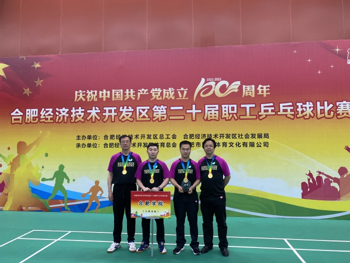 為慶祝中國共產(chǎn)黨成立100周年,豐富職工文化生活,展現(xiàn)職工風(fēng)采,推動(dòng)全民健身活動(dòng)的開展,4月23日至25日,經(jīng)開區(qū)第二十屆職工乒乓球比賽在李寧體育館隆重舉行。區(qū)內(nèi)36家企事業(yè)單位、420多人次參賽,經(jīng)過激烈拼搏,我校教工代表隊(duì)包攬男子團(tuán)體、男子雙打和男子單打的冠、亞軍。