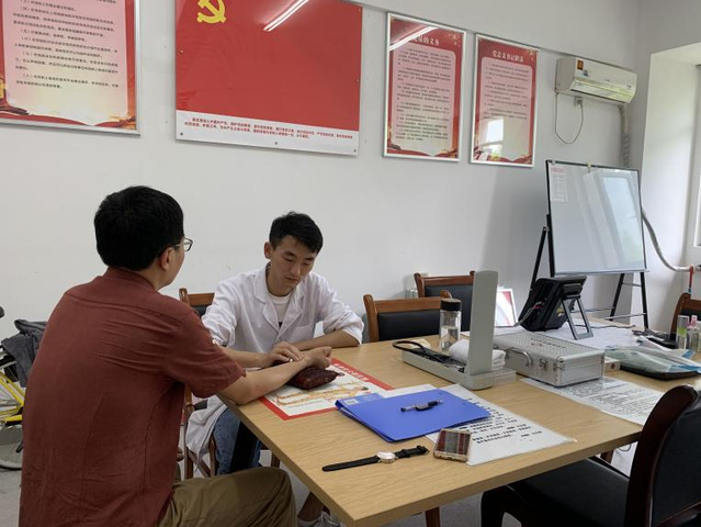 中醫文化作為中國傳統優秀文化的重要組成部分,具有創新文化的潛質。在中華民族五千年的歷史長河中,始終擔負著促進健康的重要角色,是中華民族長期同疾病作斗爭的智慧結晶。本次活動主要內容是運用中醫文化知識進行亞健康職業病調研并進行相關服務,如中醫號脈、測量血壓、檢查頸椎腰椎、拔罐和針灸等,同時普及養生食療保健知識。活動中,每天上午進行號脈咨詢,教職工們紛紛前來,通過號脈的方式了解身體健康狀況,同時向專家咨詢合適的養生方式。下午則進行治療,張明專家根據教職工的身體情況,為大家安排了刮痧、針灸、穴位療法等治療方式。