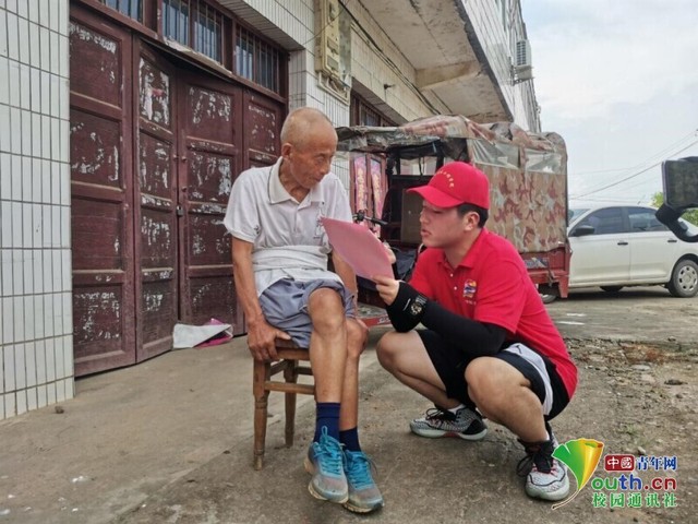 圖為團隊成員為當地居民分發調查問卷。中國青年網通訊員 王一諾 攝
