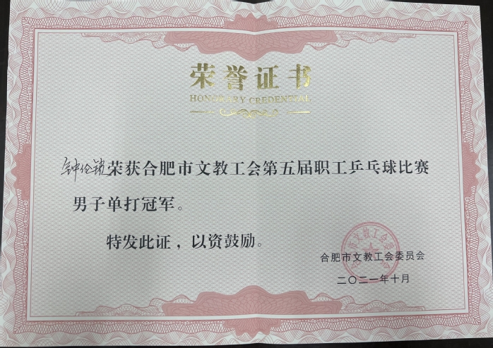 10月28日,合肥市文教工會系統(tǒng)第五屆職工乒乓球比賽在合肥市總工會隆重舉行。來自文教系統(tǒng)內(nèi)的18家單位、100多名選手參加了比賽。經(jīng)過激烈拼搏,我校教工代表隊獲得混合團(tuán)體亞軍,包攬男子單打的冠、亞軍。