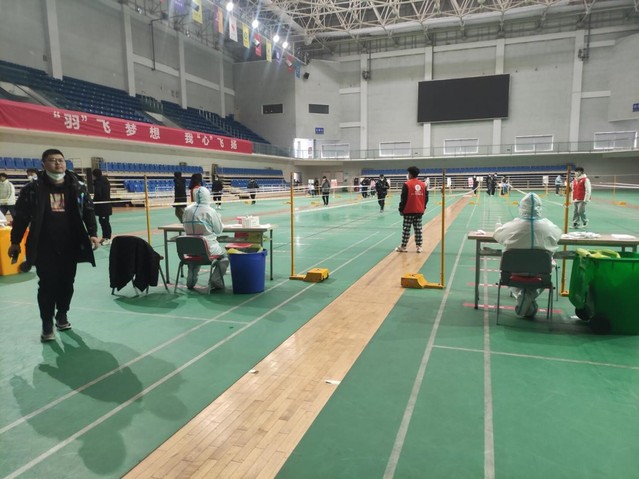 體育館內醫護人員正在開展核酸檢測