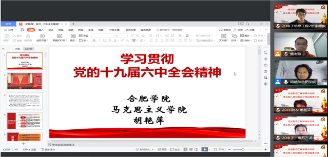 202251日晚18:00先進(jìn)制造工程學(xué)院分黨校第五期入黨積極分子通過(guò)騰訊會(huì)議平臺(tái)開(kāi)展了第三次黨課教學(xué),本次黨課由馬克思主義學(xué)院黨委書(shū)記、院長(zhǎng)胡艷萍教授主講,機(jī)制學(xué)生黨支部書(shū)記威力旺老師主持,先進(jìn)制造工程學(xué)院分黨校第五期入黨積極分子124學(xué)員參加了本次課程,本次授課主題是學(xué)習(xí)貫徹黨的十九屆六中全會(huì)精神