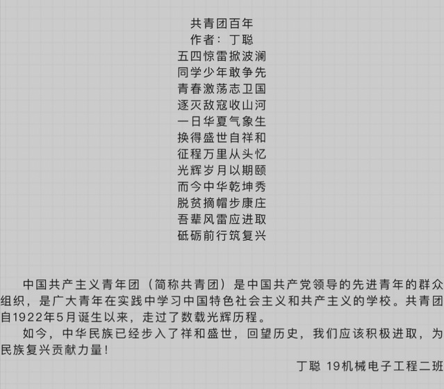 值此建團百年之際,為紀念五四運動,發揚五四精神,激發合肥學院學子愛國之情,南艷青年舉辦了紀念五四運動主題作品系列活動。