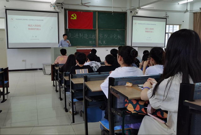 2022517日中午1240分,先進制造工程學院分黨校第五期入黨積極分子在383階梯教室開展了第六次黨課教學。本次黨課由校黨委委員、學工部朱濤部長主講,機制學生黨支部書記威力旺老師主持,先進制造工程學院分黨校第五期入黨積極分子班124名學員參加了本次課程,本次授課主題為端正入黨動機,爭做時代新人