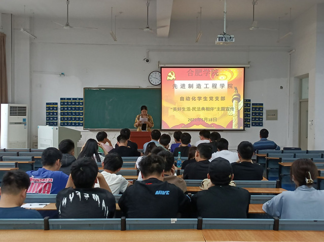 根據學校黨委組織部和學院黨委關于開展民法典學習宣傳的工作安排,2022年5月18日下午4時,先進制造工程學院自動化學生黨支部在36棟101展開了“美好生活,《民法典》相伴”主題宣傳活動,旨在讓黨員同志們學習了解《民法典》,以法立人,依法守法,尤其是對于即將步入社會的大四畢業生,要認真學習研讀法律知識,在將來的工作和生活中,知法守法,讓法律真正成為個人權利的保障。