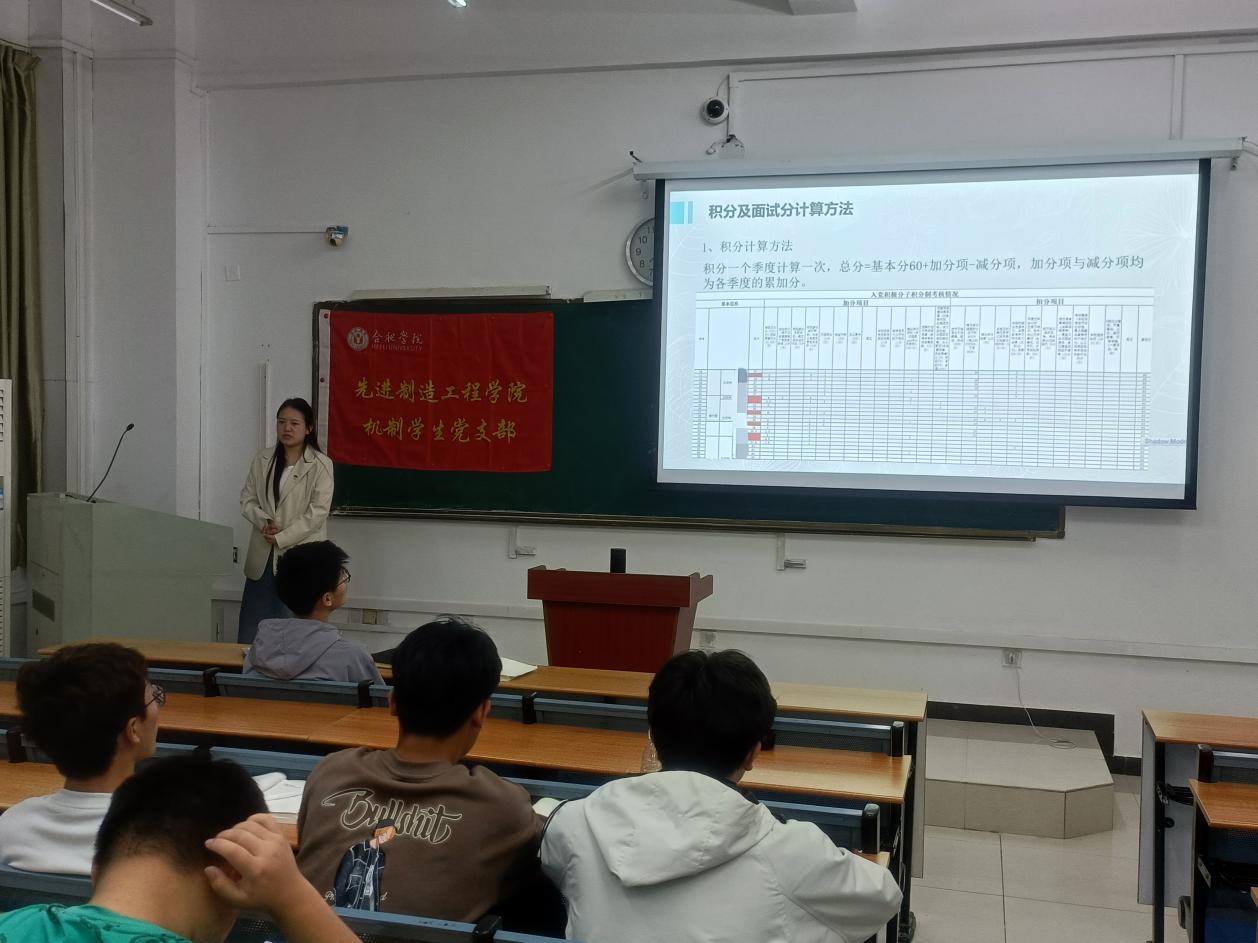 最后,程薇分享了自己對(duì)入黨的認(rèn)知體悟,她認(rèn)為身為大學(xué)生應(yīng)當(dāng)主動(dòng)關(guān)注國(guó)家大事,思想上不斷向黨組織靠攏,行動(dòng)上時(shí)刻體現(xiàn)當(dāng)代大學(xué)生的精神風(fēng)貌,做到思想上和行動(dòng)上先入黨。還詳細(xì)介紹了支部對(duì)入黨積極分子實(shí)施積分考核制的具體辦法,讓大家通過積分考核不斷促進(jìn)自己在日常學(xué)習(xí)、生活和工作中的榜樣作用發(fā)揮。
