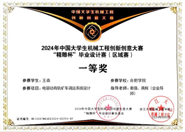 為提高機械專業學生的創新能力,先進制造工程學院歷來高度重視科創比賽,積極參與題目申報和作品提交,經指導老師和同學們5個多月的努力,我校獲批的畢設作品順利提交,2024522日大賽組委會公布了區域賽評審結果,我校王森同學(導師 秦強)獲得中部賽區一等獎,并獲得進入全國現場決賽的資格。