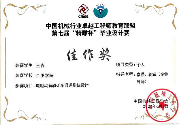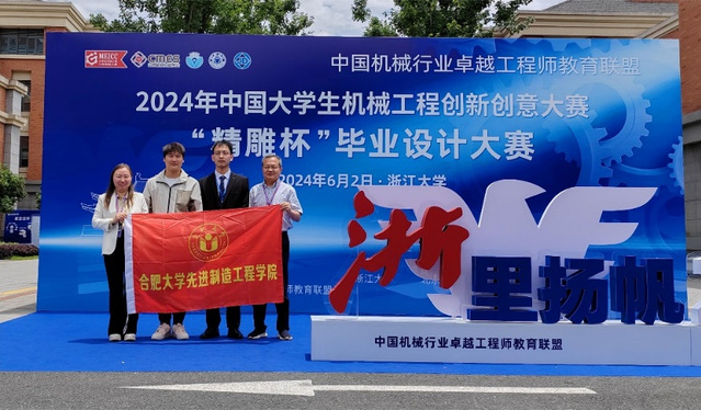 202462,由中國機械工程學會和中國機械行業卓越工程師教育聯盟共同主辦的中國機械行業卓越工程師教育聯盟“精雕杯”畢業設計大賽決賽在浙江大學舉行。先進制造工程學院黨委書記杜娟、副院長秦強帶隊,2020級機制專業王森同學攜其畢業設計作品參賽,獲比賽佳作獎。