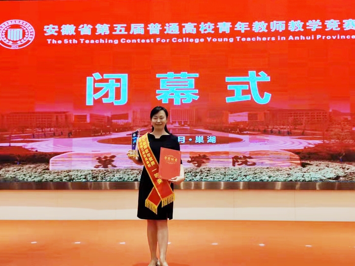 作為一名優秀的青年黨員教師,徐天戍有著扎實的專業基礎和教學功底,也曾多次獲得各類大賽的獎項榮譽,為學院乃至學校爭光。2017年獲合肥學院第八屆青年教師教學競賽一等獎,2018年獲安徽省教壇新秀稱號,2021年獲合肥學院第十一屆青年教師教學創新大賽一等獎……除此之外,徐天戍還主持省廳級教科研項目5項、校級項目5項,參與省級精品課程及示范課建設多項,發表學術論文近20篇等。這一項項榮譽,都是她在專業教學路上不斷前進的印記。當被問起“征戰”各類賽事的心得,徐天戍堅定地說:“在比賽中我時常告訴自己,我的表現不僅代表的是我個人,更代表著外國語學院的榮譽。同時,在比賽前期,學院很多資深前輩給予我很多的指導和幫助,無論如何,我一定會全力以赴,不負大家對我的期望!”