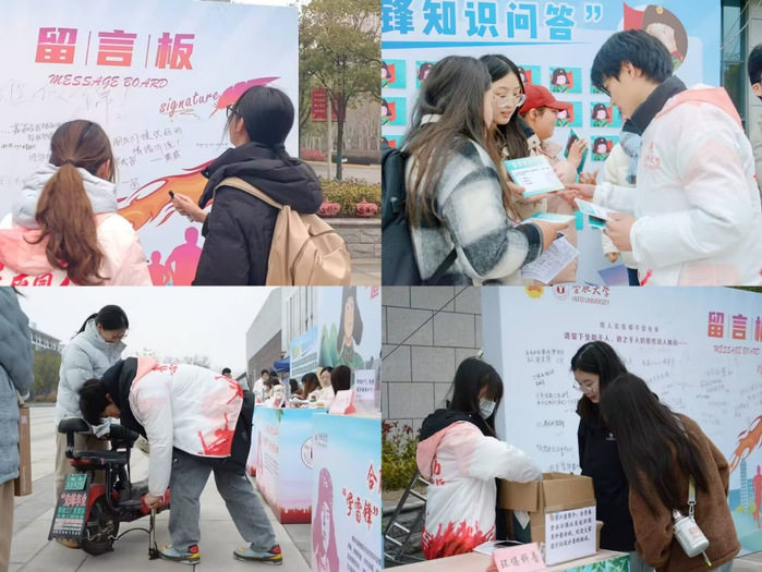 服務(wù)驛站映日輝,點(diǎn)亮春日校園美。校青年志愿者聯(lián)合會(huì)設(shè)置“追尋雷鋒足跡”服務(wù)驛站,志愿者們?yōu)閹熒峁┭坨R清洗、電腦維修、電瓶車打氣、手機(jī)貼膜、證件照拍攝、醫(yī)療護(hù)理、圖書捐贈(zèng)、科普環(huán)保等多項(xiàng)公益服務(wù)。為吸引更多青年學(xué)生參與活動(dòng),青志聯(lián)組織開(kāi)展“雷鋒知識(shí)問(wèn)答”盲盒競(jìng)猜和“贈(zèng)人玫瑰,手留余香”留言活動(dòng)。活動(dòng)期間,驛站累計(jì)服務(wù)近千余人。