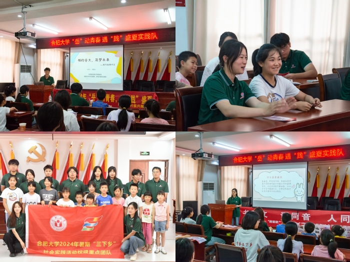 實踐團隊面向湯池村中小學生開展推廣普通話、預防詐騙、相約合大、黨史教育等特色課程宣講活動。團隊前期成功申報2024年“推普助力鄉(xiāng)村振興”全國專項團隊,開辦普通話知識小課堂,通過“繞口令”等小游戲,寓教于樂,向當?shù)匦∨笥淹茝V普通話,為鄉(xiāng)村振興插上“語言的翅膀”。預防詐騙和相約合大課程圍繞“我的夢想”和“我為合大代言”展開,團隊向小朋友們介紹了大學校園生活,在拓展鄉(xiāng)鎮(zhèn)兒童視野的同時,也在他們心里埋下夢想的種子。