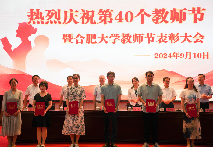 校領導、黨委委員分別為安徽省教育工作先進集體、安徽省優秀教師、安徽省優秀教育工作者、2023年度江淮英才培養計劃杰出項目創新人才、第四屆全國教師教學創新大賽安徽賽區獲獎教師、全省高校思政課現場教學展示獲獎教師、2023年度省級教學名師、2023年度省級教壇新秀等獲獎教師頒獎。