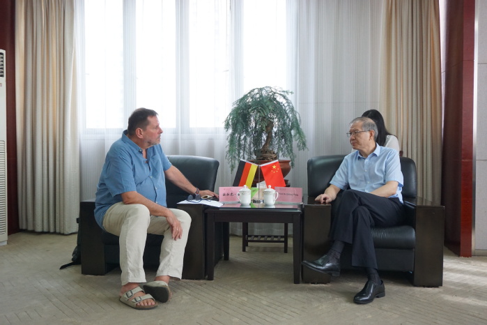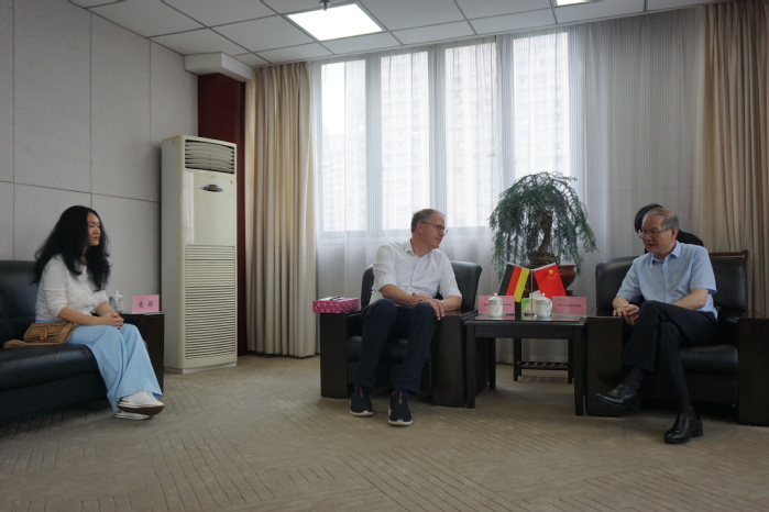 王其東首先對來校工作與訪問的兩位教授及家屬表示熱烈歡迎,簡要介紹學校在大學更名后的各項事業(yè)發(fā)展,期待在未來發(fā)展中繼續(xù)得到兩位教授的支持,把施特拉爾松德孔子學院與中外合作辦學專業(yè)兩個中德教育合作品牌做大做強。