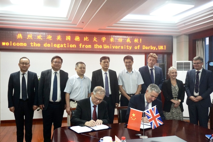 會(huì)上,安徽工程大學(xué)和我校分別與德比大學(xué)簽署合作備忘錄。