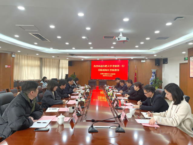2月25日,學校調研團一行7人前往瑤海區,就校地合作事宜開展實地調研及座談交流活動。瑤海區委常委、區政府常務副區長柳偉、合肥東部新中心建設管理辦公室副主任王峰、瑤海區委組織部、教體局、科技局、投促中心等相關部門負責同志出席座談交流。校黨委組織部、學生處、人事處、科研處及國際交流合作處相關負責人參加此次調研交流