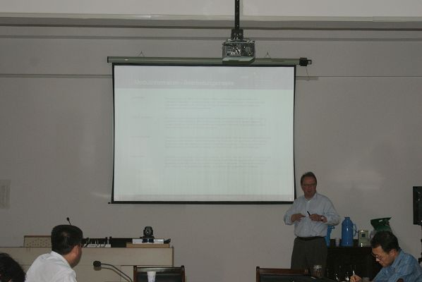 會上,副院長丁明教授代表學院向海納教授一行的到來表示熱烈歡迎。他說,我院同德國高校有著長期合作辦學的歷史,在借鑒德國應用型人才培養的辦學經驗的基礎上,我院又率先進行了模塊化教學改革。對此,丁院長強調,從事一線教學管理的老師要充分掌握德國模塊化教學的內涵, 認真領會模塊化教學的實質,做到與我院的教學改革實際相結合,根據我院的辦學定位和專業特色,扎實有效地推進模塊化教育教學改革。