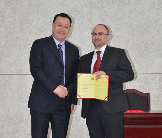 書記蔡敬民為庫爾特?博德維克先生頒發聘書 書記蔡敬民為麥克?伊格納先生頒發聘書 雙方簽訂校企合作協議 庫爾特?博德維克先生報告會現場