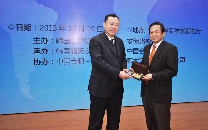 12月19日上午,由韓國駐上海總領(lǐng)事館、安徽省教育廳主辦,韓國順天鄉(xiāng)大學(xué)與合肥學(xué)院承辦、中國—合肥韓國中心、韓大文化交流有限公司協(xié)辦的第六屆安徽省順天鄉(xiāng)杯韓國語演講大賽在我院圖書館學(xué)術(shù)報(bào)告廳舉行。韓國駐上海總領(lǐng)事館教育領(lǐng)事李善雨、安徽省教育廳外事處處長耿尊芳及韓國順天鄉(xiāng)大學(xué)副校長金正植、國際教育交流處處長劉炳旭、中國語教育學(xué)院院長樸炯春、國際教育交流處團(tuán)長慎鏞晰、國際教育交流處金仁榮女士等應(yīng)邀擔(dān)任比賽評(píng)委。我院黨委書記蔡敬民,院長張文兵,副院長陳嘯,客座教授趙誠惠、樸南圭以及外事處、教務(wù)處等相關(guān)部門負(fù)責(zé)人出席了比賽的開幕式和閉幕式。來自浙江越秀外國語學(xué)院、安徽中醫(yī)藥大學(xué)、黃山學(xué)院等近20余所高校的選手參加了此次比賽。開幕式由陳嘯主持。