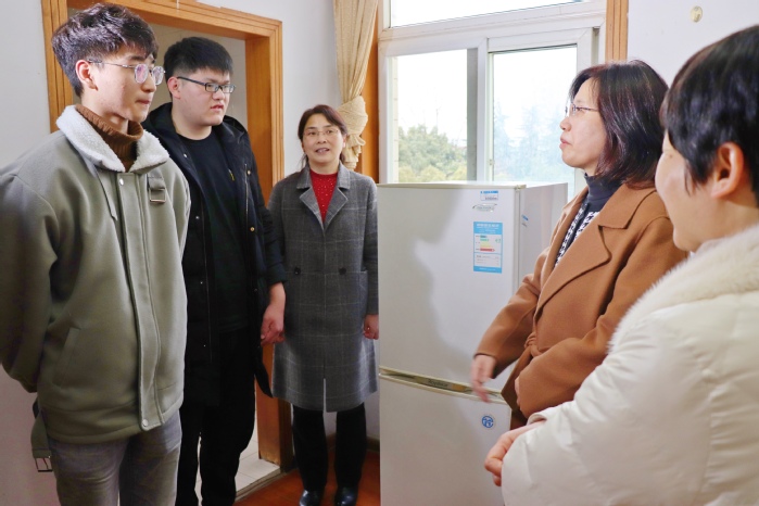 春暉漸近舊歲去,一元復始萬象新。在疫情防控常態化的背景下,寒假期間留校過年的學生數量較往年有所增加。為進一步做好留校學生的關心關懷工作,2月1日下午,校長吳春梅、副校長陳秀帶隊赴學生公寓看望了20余名留校學生,提前向大家致以節日問候和新春祝福。