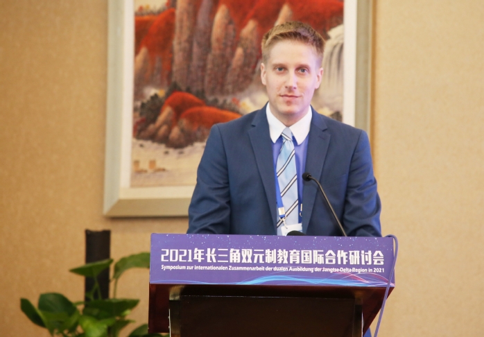 當(dāng)日下午,大會(huì)報(bào)告精彩繼續(xù)。安徽大學(xué)黨委書記蔡敬民教授從“國家戰(zhàn)略、國際經(jīng)驗(yàn)、實(shí)踐探索和未來展望”四個(gè)方面分享了高水平應(yīng)用型大學(xué)的探索與實(shí)踐。同濟(jì)大學(xué)范蕊教授基于中德合作項(xiàng)目分析了中德合作復(fù)合型人才培養(yǎng)的模式。浙江科技學(xué)院中德應(yīng)用型大學(xué)研究院院長徐理勤教授在長期中德合作的基礎(chǔ)上,呈現(xiàn)了中德產(chǎn)教融合雙元制學(xué)院的實(shí)踐探索。南京工業(yè)職業(yè)技術(shù)大學(xué)張海寧處長從職業(yè)教育國際化發(fā)展的戰(zhàn)略視角分析了我國職業(yè)教育發(fā)展的政策和現(xiàn)狀,介紹了南工國際化及雙元制教育的實(shí)踐。合肥學(xué)院教務(wù)處王曉峰處長以“打通教育鏈與產(chǎn)業(yè)鏈‘最后一公里’”為主題闡述了合肥學(xué)院“雙元制”高等教育探索與實(shí)踐。他從合肥學(xué)院中德合作36年的實(shí)踐出發(fā),分析了新時(shí)代合肥學(xué)院實(shí)施雙元制高等教育面臨的機(jī)遇和挑戰(zhàn)。并提出通過國際“雙元制”高等教育培養(yǎng)模式的建立,進(jìn)一步推動(dòng)了產(chǎn)教深度融合,打通教育鏈與產(chǎn)業(yè)鏈的“最后一公里”。合肥職業(yè)技術(shù)學(xué)院校長邵一江教授以四個(gè)雙元育人的典型案例,展示了高職院校聚集雙元育人、賦能產(chǎn)業(yè)發(fā)展的實(shí)踐成果,為同類院校提供了有益的經(jīng)驗(yàn)。作為職業(yè)學(xué)校的代表,馬鞍山工業(yè)學(xué)校邰德水校長聚焦學(xué)校數(shù)控技術(shù)應(yīng)用專業(yè)開展中德合作的情況,以及充分吸收和有效借鑒德國雙元制職業(yè)教育進(jìn)行本土化創(chuàng)新的實(shí)踐及獲得的成果。