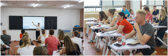 我校為來(lái)自德國(guó)的大學(xué)生們安排了豐富多彩的活動(dòng)。不僅有中文的學(xué)習(xí),還有各項(xiàng)中國(guó)傳統(tǒng)文化的體驗(yàn)。不僅有中國(guó)企業(yè)的參訪,也有對(duì)中國(guó)大好河山的考察。在中文課上,中文老師不僅教授了拼音和漢字,還介紹了中國(guó)的傳統(tǒng)文化和中國(guó)的概況,讓學(xué)生們對(duì)中文、中國(guó)產(chǎn)生了濃厚的興趣。在傳統(tǒng)文化體驗(yàn)課上,書法老師教授了基本的書法知識(shí),學(xué)生們有機(jī)會(huì)親自揮毫潑墨,一覽中國(guó)書法的美妙與藝術(shù);學(xué)生們跟著老師學(xué)習(xí)剪紙技藝,剪出了形態(tài)各異的中國(guó)漢字;專業(yè)的茶藝?yán)蠋熯M(jìn)行了茶藝表演和講解,讓學(xué)生們體會(huì)到中國(guó)茶文化的獨(dú)特魅力;學(xué)生們還親身體驗(yàn)了漢服,感受古代的風(fēng)姿和儀態(tài),并參與了踢毽子、投壺等中國(guó)傳統(tǒng)游戲。