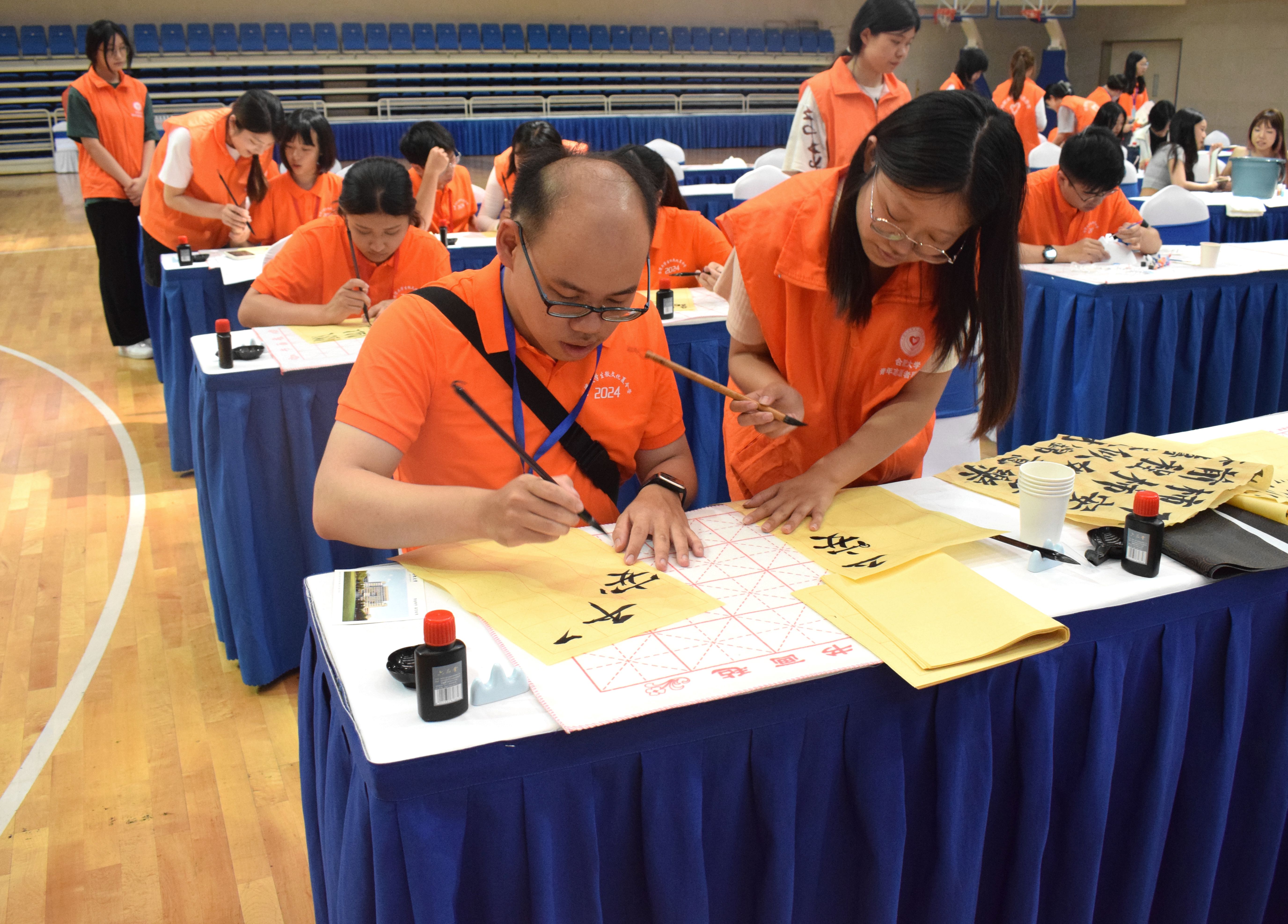 7月5日,為促進海峽兩岸青年學生交流,我校在體育館舉辦2024皖臺大學生徽文化夏令營傳統文化體驗營活動。黨委委員、副校長白義香出席活動并致辭,皖臺交流協會領導、黨委宣傳部部長賈峰、港澳臺辦公室主任張慧,以及銘傳大學、云林科技大學、東海大學、東華大學、安徽農業大學、合肥師范學院、我校師生參加活動。