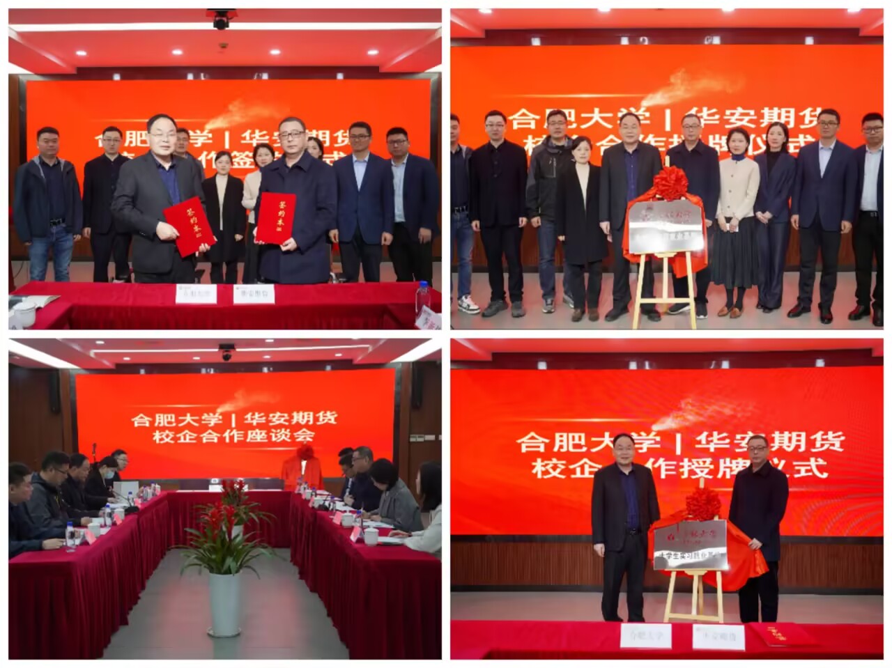 為拓展校企合作實踐基地,進一步提升應用型人才培養質量,3月12日上午,經濟與管理學院一行赴華安期貨開展大學生校外實習基地簽約與訪企拓崗工作。合肥大學經濟與管理學院院長陳江華、學院黨委副書記、紀委書記夏丹青、投資金融系主任李殿云以及華安期貨副總經理李鴻浩、華安期貨首席風險官閆偉等出席儀式。