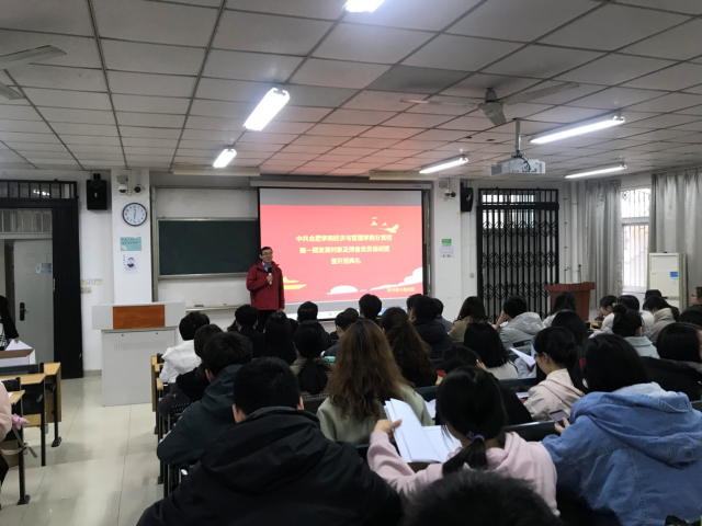 2019年11月25日中午,經濟與管理學院分黨校第一期發展對象及預備黨員培訓班開學典禮及第一講于我校一區博學樓B座107室順利召開。經濟與管理學院黨委書記楊學春和各黨支部書記出席此次開班典禮,馬克思主義學院蔡傳斌老師擔任授課人,經濟與管理學院全體預備黨員到場聆聽。