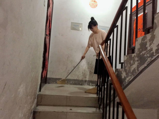 活動(dòng)開(kāi)展之前,全體成員通過(guò)創(chuàng)新“互聯(lián)網(wǎng)+”模式線上開(kāi)會(huì)進(jìn)行討論,后制定了詳細(xì)具體的活動(dòng)方案。方案一經(jīng)制定,各成員就立即與所在社區(qū)聯(lián)系,因地制宜地確定合適的活動(dòng)內(nèi)容。清潔消防通道、打掃小區(qū)道路、鏟除墻壁小廣告,他們?cè)诼飞希?/span>盡管天氣炎熱,但是每一位成員都熱情高漲,他們不怕臟,不怕累,認(rèn)真地把樓梯打掃干凈,仔細(xì)地清除不文明小廣告。他們彎曲的腰背,形成了一道道獨(dú)特的風(fēng)景線。路上遇見(jiàn)居民,他們還會(huì)向居民講解保護(hù)環(huán)境的重要性,倡議要愛(ài)護(hù)我們美麗的家園,共同為社區(qū)創(chuàng)建一個(gè)良好的生活環(huán)境。