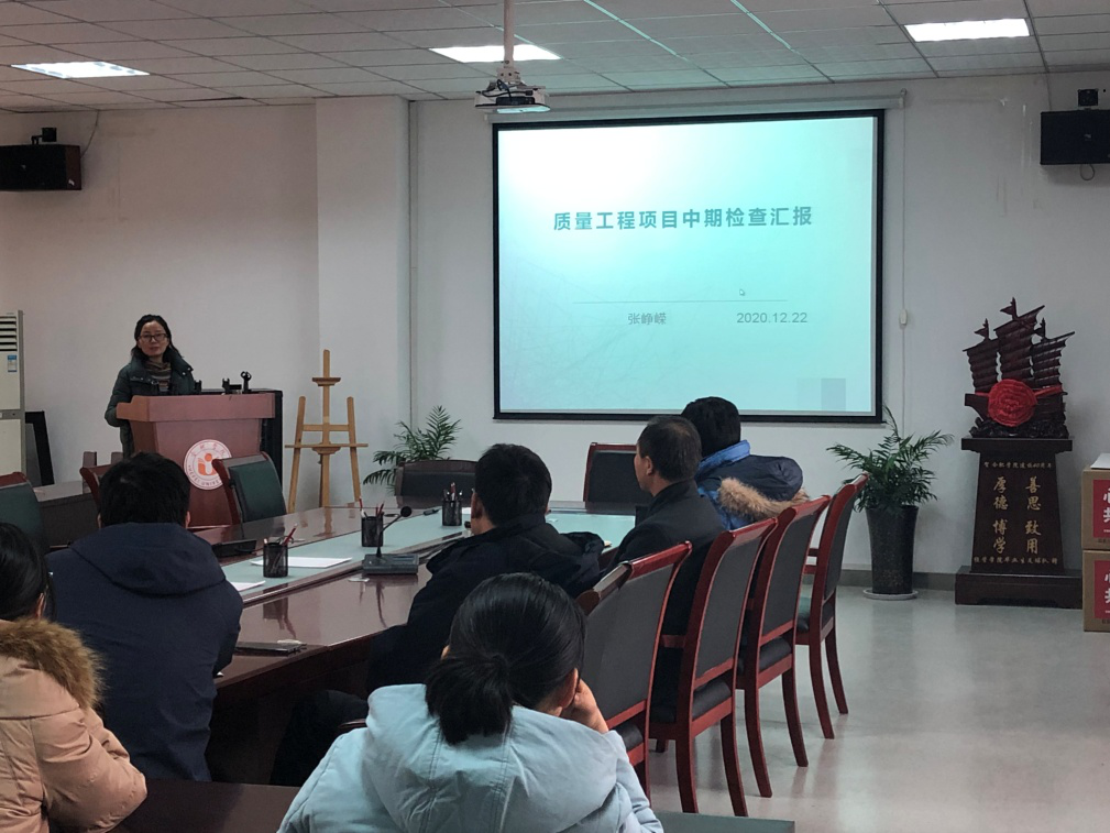 12月22日下午,我院在四號(hào)樓二樓會(huì)議室舉辦了省級(jí)校級(jí)質(zhì)量工程項(xiàng)目中期檢查匯報(bào)會(huì),對(duì)19年質(zhì)量工程項(xiàng)目進(jìn)行了中期檢查。學(xué)院副院長(zhǎng)宋玉軍教授、各項(xiàng)目負(fù)責(zé)人、教學(xué)辦工作人員和部分老師參加了會(huì)議,教學(xué)辦主任楊承剛主持了匯報(bào)會(huì)。