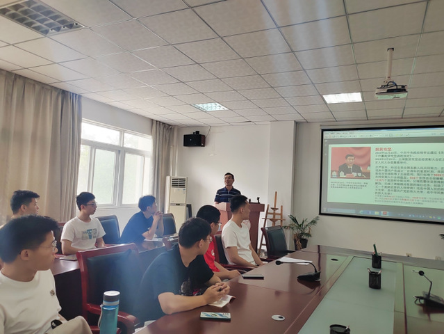 本次黨課的主題是“十個明確”彰顯馬克思主義中國化新飛躍述評?!笆畟€明確”是對習近平新時代中國特色社會主義思想的核心內容的系統概括,將黨的領導置于“十個明確”的首位,堅持中國共產黨領導,全黨必須增強“四個意識”、堅定“四個自信”、做到“兩個維護”。期間楊書記強調了“四個自信”中的文化自信,希望全體研究生支部的同志們提高明辨是非能力,在做任何事情前要深思熟慮,同時楊書記為我們講述了在疫情防控、脫貧攻堅、抗洪搶險時期黨員先鋒模范的英勇事跡,讓研究生支部同志們肅然起敬。最后楊書記強調,要堅定維護以習近平同志為核心的黨中央權威和集中統一領導,以永遠在路上的堅定執著,將黨的自我革命進行到底,并且對研究生黨支部寄予了殷切的期望,希望全體黨員同志在今后的科研學習中,要不畏困難,要敢于探索和鉆研,同時要有團隊合作意識,勇于去探索科研中的盲區。