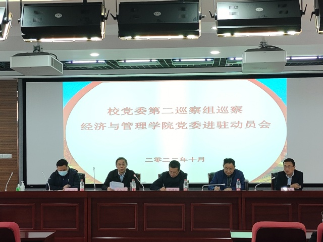 2022年10月9日上午召開了校黨委第二巡察組巡察經濟與管理學院黨委進駐動員會。會議由經濟與管理學院黨委書記倪澤強主持,經濟與管理學院院長陳江華,校紀委副書記兼紀委辦主任羅會必,校黨委巡察辦主任丁增云等出席會議,經管學院部分教師代表和學生代表參加會議。