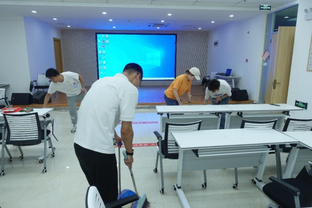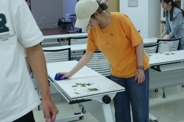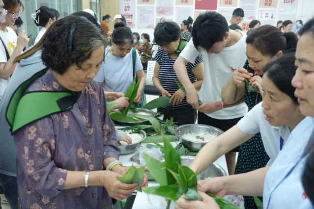 之后,學生黨員們前往服務中心參觀了協商議事廳、圖書閱覽室、老年活動室、黨建動態展區等地。恰逢社區舉辦“粽葉飄香迎端午,溫情義診進社區”活動,學生黨員們熱情地參與其中,并在活動結束后幫助工作人員打掃場地,得到了社區居民們的一致好評。