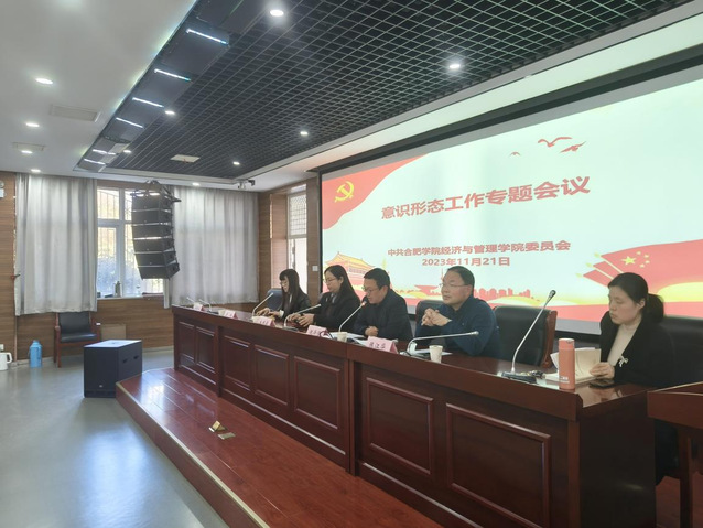 會議首先由倪澤強傳達了合肥學院2023年下半年意識形態工作專題研究會議暨大學生思想政治教育工作領導小組擴大會議主要精神。倪澤強強調,全體教職工要重視意識形態領域工作的開展,對課堂教學、講座論壇、教材建設、師德師風、學生教育等方面可能存在的意識形態問題進行了針對性指導,并提醒全體教職工要以高度的責任感切實擔負起意識形態工作職責。最后,倪澤強指出,全體師生要具備紅線意識,嚴守底線,不斷加強師生意識形態領域建設。