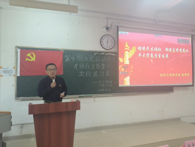 為加強入黨積極分子的培養,提升學生黨員的發展質量,2024年5月8日中午,經濟與管理學院分黨校第十期入黨積極分子培訓班開班典禮暨第一課在4棟103、107教室同時舉辦,經濟與管理學院黨委書記倪澤強、黨委副書記夏丹青、第十期入黨積極分子培訓班班主任王晨森、陳維浩及247名入黨積極分子參加典禮。