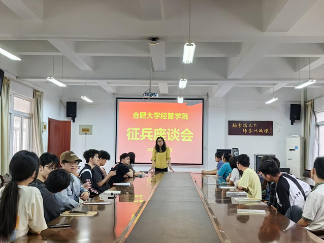 為深入貫徹全國(guó)征兵工作會(huì)議的精神,經(jīng)濟(jì)與管理學(xué)院于2024年6月6日在學(xué)院6棟二樓會(huì)議室召開(kāi)征兵座談會(huì),會(huì)議邀請(qǐng)合肥大學(xué)征兵辦負(fù)責(zé)人鄭國(guó)平老師擔(dān)任主講。