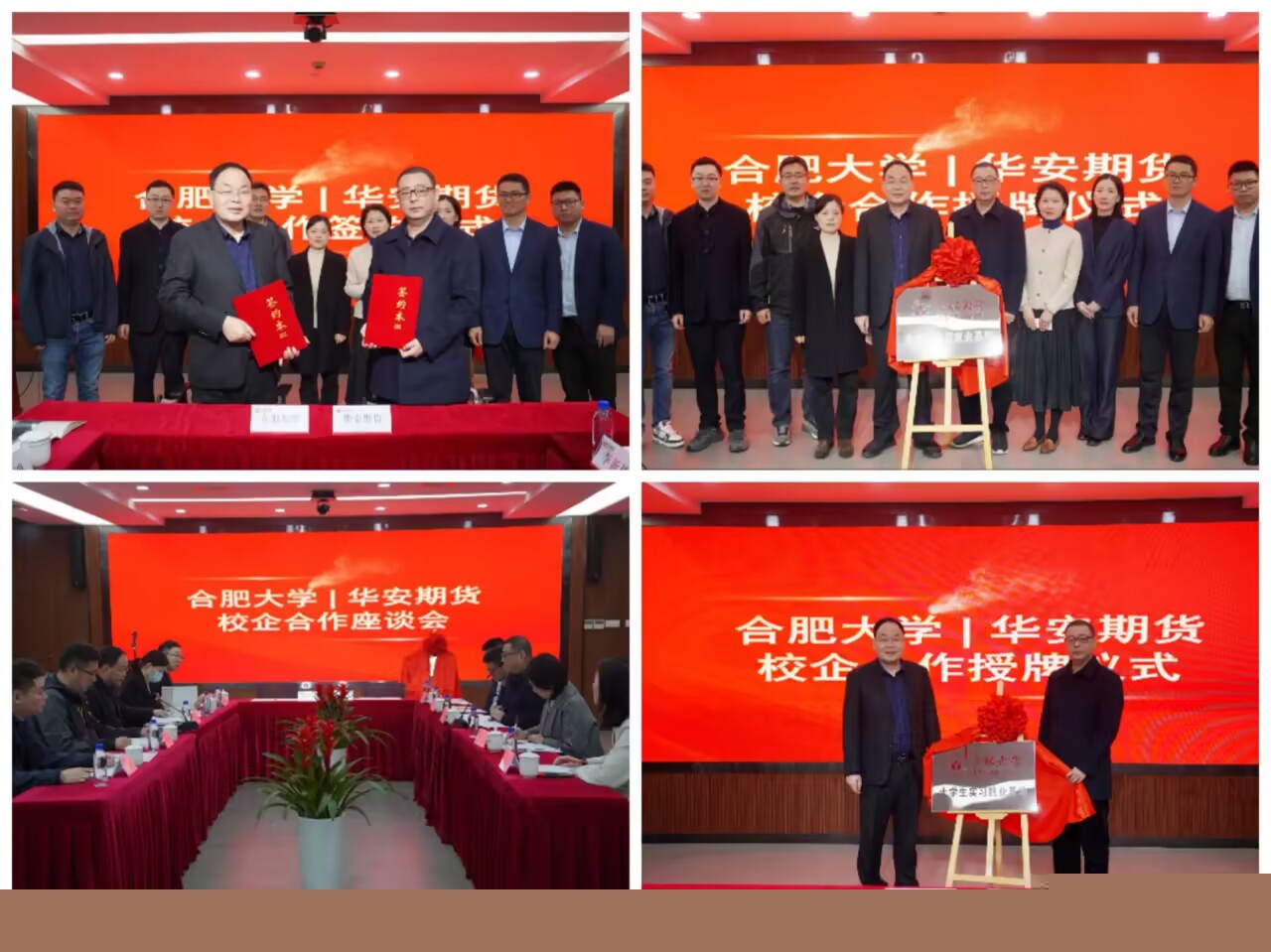 為拓展校企合作實踐基地,進一步提升應用型人才培養質量,3月12日上午,經濟與管理學院一行赴華安期貨開展大學生校外實習基地簽約與訪企拓崗工作。合肥大學經濟與管理學院院長陳江華、學院黨委副書記、紀委書記夏丹青、投資金融系主任李殿云以及華安期貨副總經理李鴻浩、華安期貨首席風險官閆偉等出席儀式。