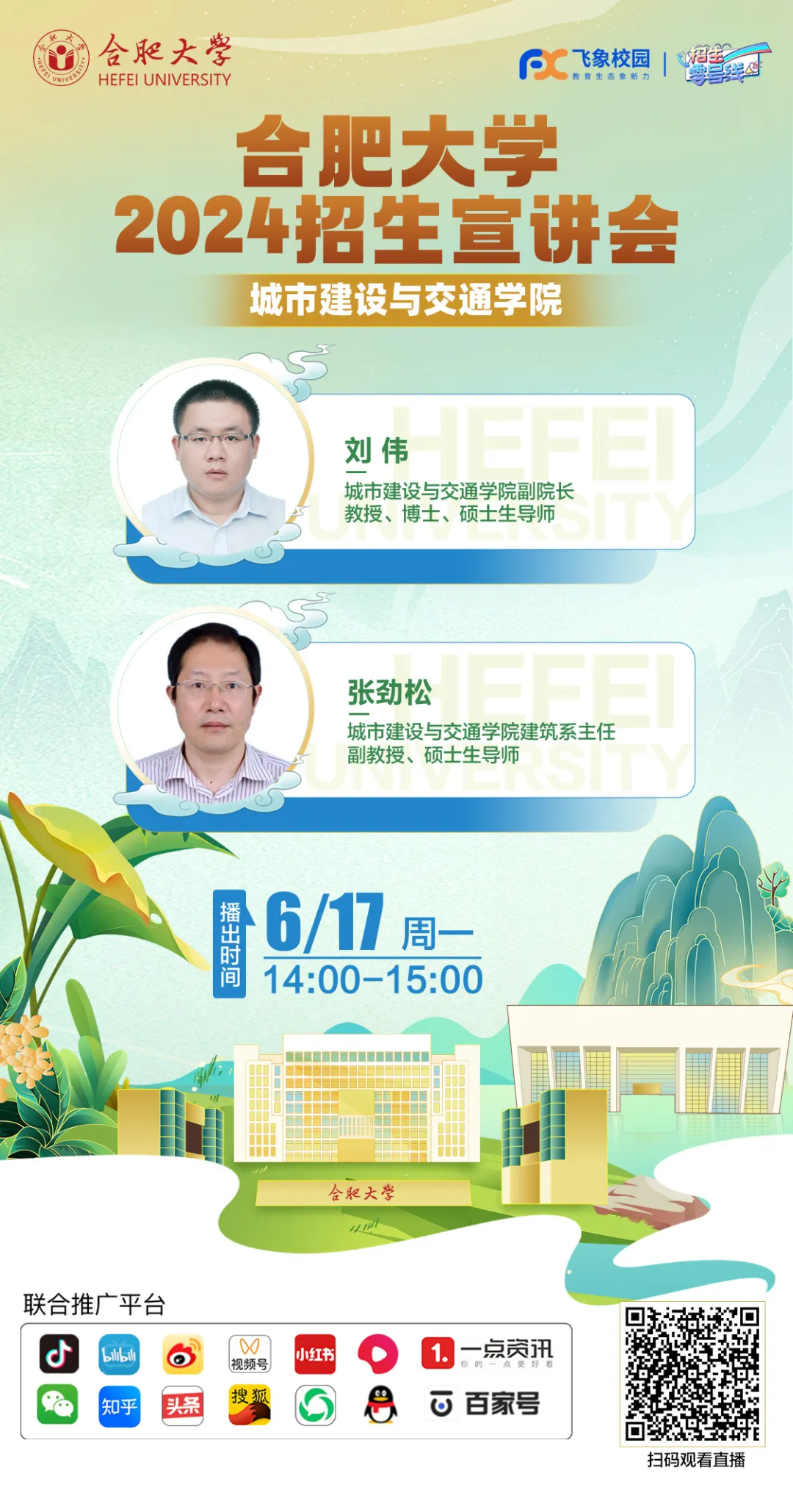 2024年招生宣講系列直播 精彩來(lái)襲 6月17日-6月18日 各學(xué)院院長(zhǎng)、教授走進(jìn)直播間 全方位解讀 專業(yè)特色、學(xué)科優(yōu)勢(shì) 人才培養(yǎng)、就業(yè)前景 …… 感受合大辦學(xué)力量 探索多元學(xué)科魅力 零距離回答考生問(wèn)題 精準(zhǔn)助力志愿填報(bào)