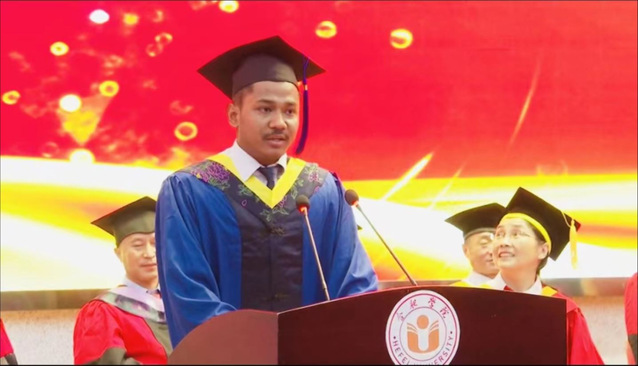 Narendra Basel是能源材料與化工學(xué)院“材料科學(xué)與工程”專業(yè)的碩士留學(xué)生,2019年經(jīng)過合肥學(xué)院國際交流合作處的選拔和組織,從尼泊爾來到合肥學(xué)院求學(xué),主要從事新型膜材料與膜過程相關(guān)的課題研究。他熱愛科研,特別是化學(xué)實驗;即使是在疫情最嚴重的隔離期,他仍然堅持每天閱讀大量的英文文獻并著手設(shè)計實驗,撰寫詳細的試驗步驟與導(dǎo)師和同學(xué)們交流討論。經(jīng)過三年的學(xué)習(xí),他于2022年6月順利畢業(yè),并代表全校留學(xué)生在畢業(yè)典禮上發(fā)言致辭。