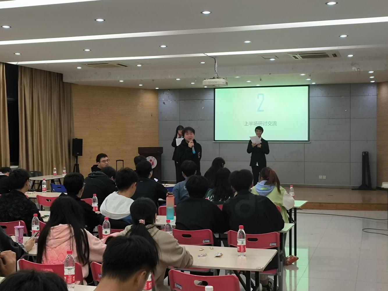接著來到了同學們的自由討論時間,在這場頭腦風暴般的討論中,同學們積極交流,解決了同學們關于志愿團時長、部門工作是否影響學習和如何豐富大學生活問題,積極的討論拉近了同學們的距離。在交流之后,來到了中場休息時間,同學們也仍未停止討論,此時文體部楊陽和董長勇同學為大家帶來了一首《素顏》,使場上的氣氛到達了頂點。在令人愉悅的歌曲之后,同學們繼續進行交流討論,使得互相的問題都有效的得到了解答最后,本次交流會在文體部樊鑫程同學所帶來的歌曲《后會無期》中迎來了尾聲。