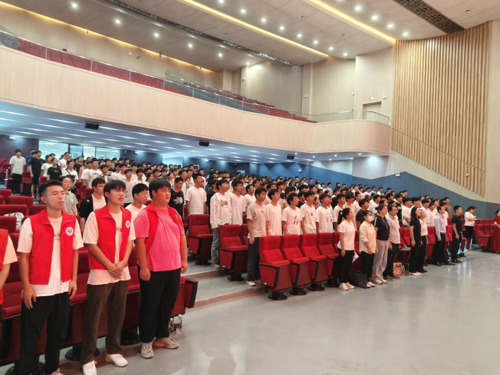 首先進行議程的第一階段:能源材料與化工學院2024級本科新生開學典禮。在莊嚴的國歌聲中,全體師生起立,激昂的旋律激發著每一個人心中的愛國情懷和對新學期的期待。