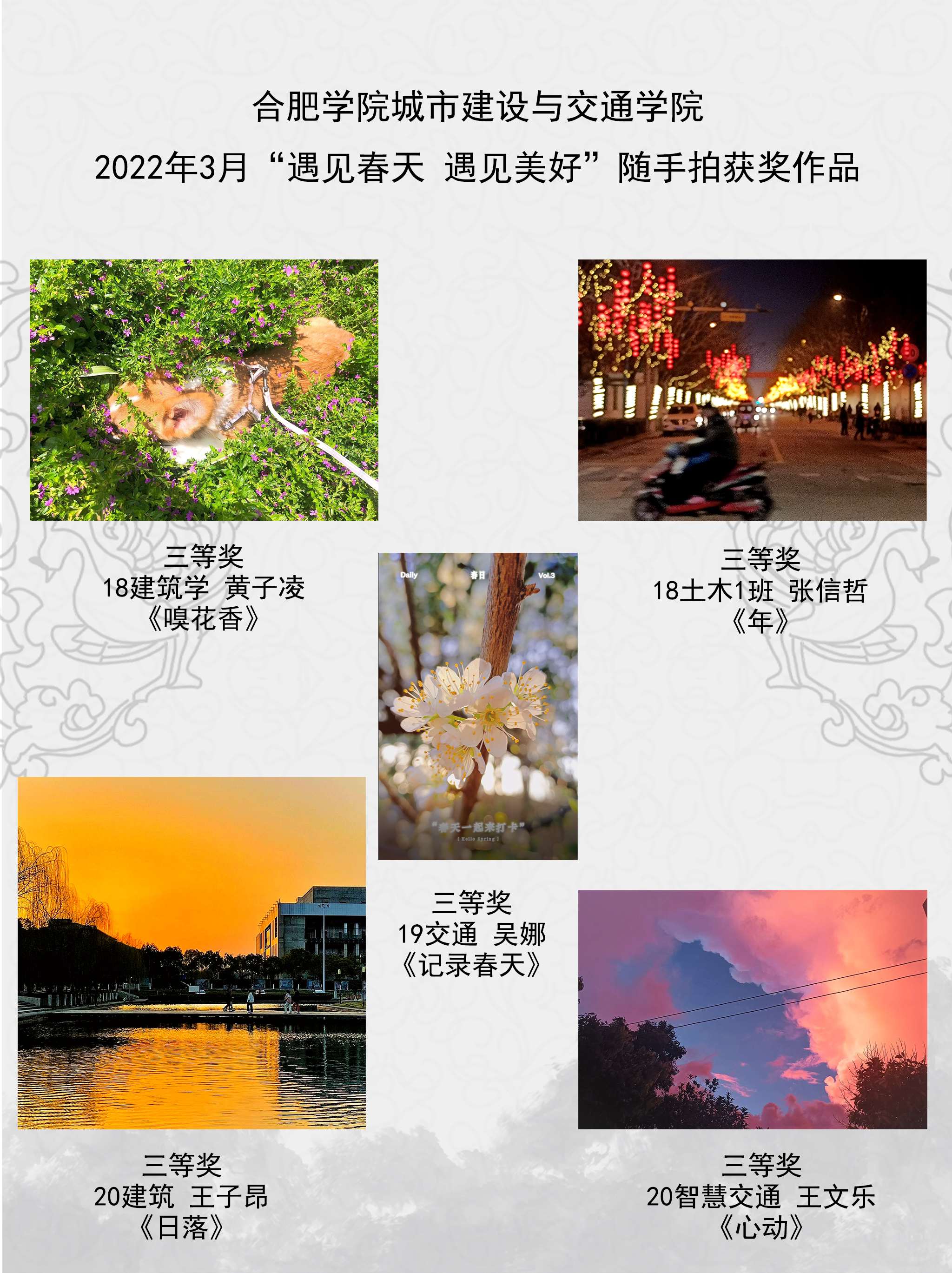 為豐富學生校園生活、發現春天和校園里的美好瞬間,城市建設與交通學院于2022年3月7日—3月25日舉辦“遇見春天 遇見美好”隨手拍活動,共收到來自四個年級的作品120余幅。