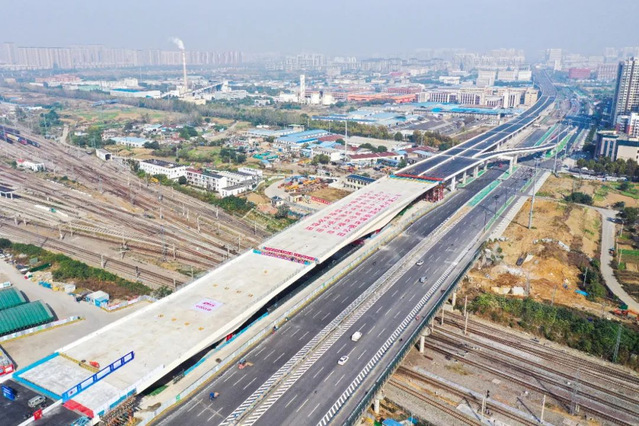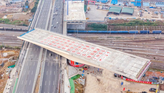 文忠路上跨合肥東站轉體橋所跨越的淮南線、羅東線等8條線路為合肥東站最繁忙的貨運線路,且轉體橋總跨度達257米,總重3.4萬噸。