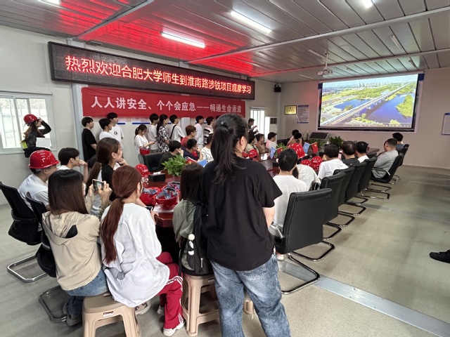 上午930分,師生們抵達項目部會議室,首先觀看了項目部精心制作的宣傳視頻。視頻詳細介紹了淮南路涉鐵項目的工程概況、建設進度、技術創新等內容,讓同學們對項目有了初步的了解。