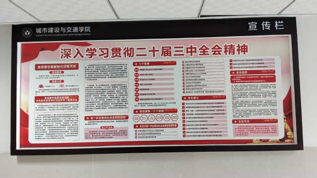 城建學院黨委同時在學院網頁設置滾動浮窗、在學院三樓宣傳欄布置《中共中央關于進一步全面深化改革推進中國式現代化的決定》主要內容的展板,做好黨的二十屆三中全會精神的宣傳工作。(城市建設與交通學院 撰稿人:王艷麗 一審:劉艷雙二審:高喬楠 三審:張永軍)