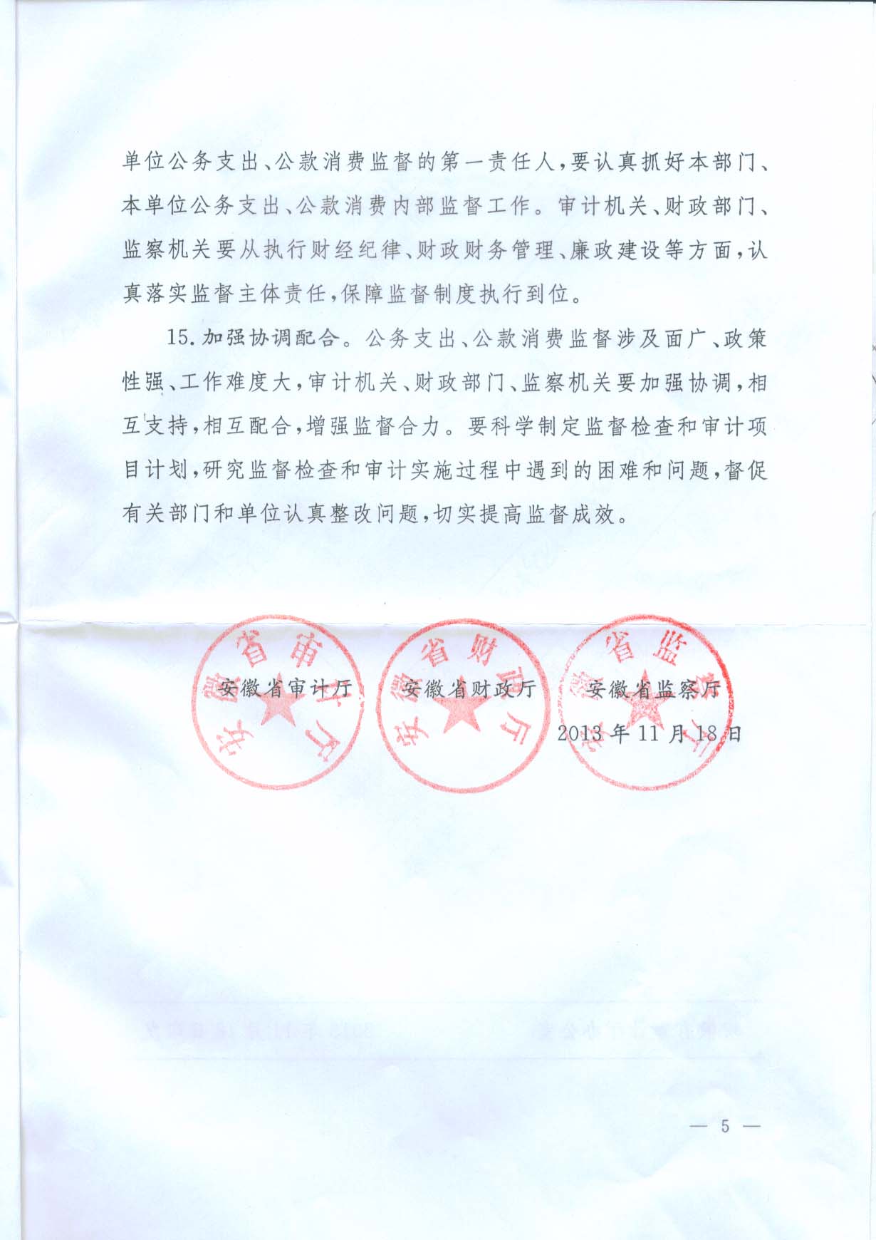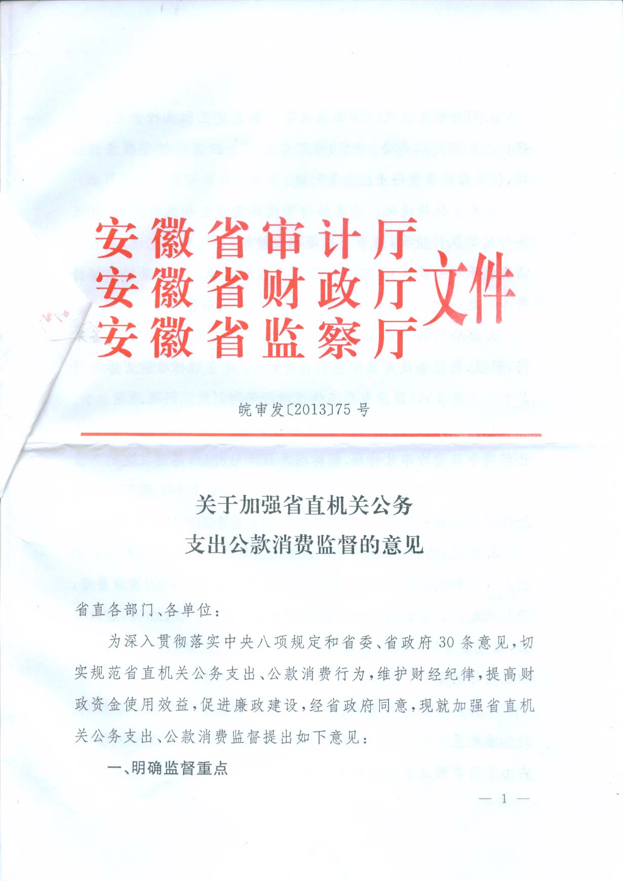 關(guān)于加強省直機關(guān)公務(wù)支出公款消費監(jiān)督的意見(皖審發(fā)【2013】75號)