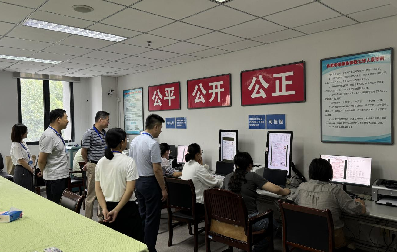 在招生錄取現(xiàn)場,考試院領(lǐng)導(dǎo)認真聽取了錄檢管理、數(shù)據(jù)處理、咨詢接待、安全保障等工作組工作情況匯報,對我校招生工作安排及開展情況給予了充分肯定,對工作人員暑期堅守工作崗位、辛勤付出表示慰問。張英明強調(diào)高招錄取事關(guān)工作廣大考生切身利益,事關(guān)教育公平和社會公正,要嚴格貫徹遵守國家教育部及省考試院相關(guān)錄檢工作的規(guī)定和要求,嚴肅錄取工作紀律,強化監(jiān)督執(zhí)紀,規(guī)范錄取工作人員工作流程,認真落實投檔錄檢等關(guān)鍵環(huán)節(jié)工作責(zé)任,及時回應(yīng)考生及家長的關(guān)切,切實做到以考生為中心,助力更多考生圓夢合肥大學(xué)。
