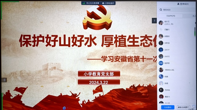 為貫徹學習習近平生態文明思想,落實安徽省第十一次黨代會關于生態文明建設的戰略部署,為綠色發展、美麗中國建設貢獻青年力量,小教黨支部于3月22日晚開展了以“保護好山好水 厚植生態優勢”為主題的黨日活動。考慮到大部分大四黨員仍未返校,此次活動通過騰訊會議的形式在線上開展。
