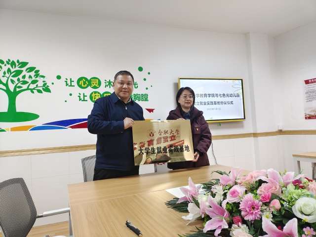 114日,學院黨委副書記王迅、黨政辦主任杜啟明、學工辦主任符琳一行赴蚌埠高新教育集團七色光幼兒園,簽訂大學生就業實踐基地協議。